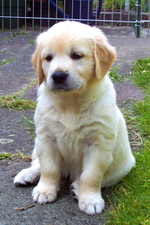 Fröhliche junge Hündin, sehr weiblich, angenehmer Kopf mit süßem Ausdruck, sehr gute Winkelungen, gute Rippen, schöne Knochen und Pfoten, schöne Rute und Fell. Ein richtiger Minigolden !